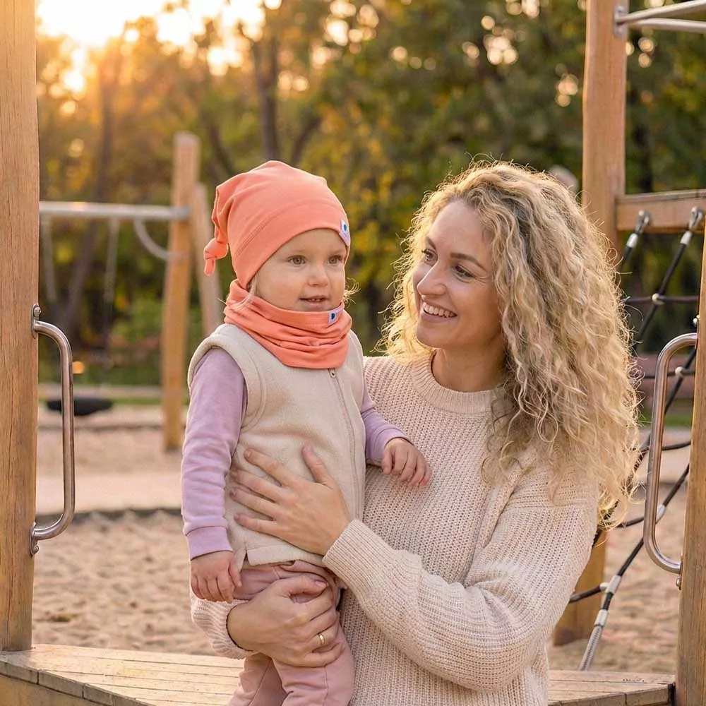 A PeggyBaby csomós sapka fejmérettől és hajhossztól függetlenül kifogástalanul passzol gyermeked fejére, a sapka tetején lévő csomó állítható, igy tökéletesen igazítható. Vagány színekkel, rugalmas pamutanyagból készül. Kellemes viseletet jelent a babáknak és/vagy kisgyerekeknek, anyagrétegzés szerint több verzióban készül így az átmeneti, tavaszi, őszi napok bármely szakaszára megtalálod a megfelelőt.