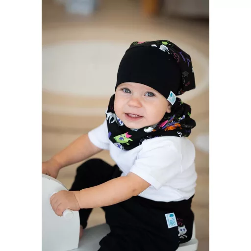 A Peggy Baby csősapka igazi kis vagány megjelenést biztosít a kicsinek. Két, színvilágában összeillő pamutanyag került összedolgozásra. A bund része rugalmasabb pamutból készül, így nem csúszkál a gyermek fején. A sapka úgy is hordható, hogy a bund részt befelé hajtod, így az érzékeny területeken, a homlok és fül résznél dupla védelmet kap a gyermek.